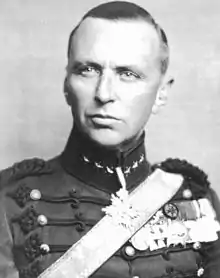 He was then attaché in Warsaw from 1919 to 1920, was in the Commission Concerning the Exchange of Greek and Turkish Populations from 1923 to 1925, the Bulgarian Refugee Commission from 1926 to 1928, in Syria in 1929 and the League of Nations border control commission in Syria and Iran in 1932.[4] In 1932, Petersén was promoted to major in the Swedish Army. He was Head of Department at the International Red Cross in Paris from 1921 to 1937, the general secretary of the Royal Swedish Aero Club from 1937 to 1939 and was legation counsellor in Berlin and worked at the B Department of the Ministry for Foreign Affairs from 1939 to 1940.[4] Petersén was head of the intelligence agency C-byrån from 1940 to 1946. In 1944, he led the Swedish side of the Operation Stella Polaris.[5]