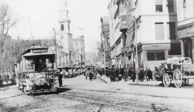 Henry James approved of Schoenhof & Moeller, describing it in 1878 as "a vastly better shop than any of the kind in London."[3] Around 1889, "Mr. Schoenhof [was] the general agent for the United States for Hachette & Co.'s (London and Paris) publications for the study of foreign languages ... [and] for Henry Holt & Co.'s (New York) publications. ... [He also sold] Steiger & Co.'s, Wm. R. Jenkins', Geo. R. Lockwood & Son's, MacMlllan's, Appleton's, Barnes' publications in foreign languages."[4] Schoenhof's shop was located near the corner of Tremont and Winter Streets: at no.40 Winter St. (1875–1876),[5] no.146 Tremont (1880–1881),[6] no.144 Tremont (1887–1889),[7] and no.128 Tremont (1902–1911).[8] In 1893 he "sold out his interest to two of his employees, who continue[d] the business under the firm-name of Castor & Co."[9][10]
