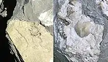 An estimated 250 million years ago, the area surrounding Carlsbad Caverns National Park served as the coastline for an inland sea. Present in the sea was a plethora of marine life, whose remains formed a reef.[6] Unlike modern reef growths, the Permian reef contained bryozoans, sponges, and other microorganisms. After the Permian Period, most of the water evaporated and the reef was buried by evaporites and other sediments. Tectonic movement occurred during the late Cenozoic, uplifting the reef above ground. Susceptible to erosion, water sculpted the Guadalupe Mountain region into its present-day state.[7]