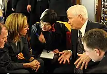 Since PSOE's Extraordinary Congress, celebrated in July 2014, Chacón handled the Socialist party's international relations.[2] When Rubalcaba later announced his resignation after his party's dismal showing in the 2014 European elections, Chacón was widely seen as one of the frontrunners for his replacement, but did not run.[11] She left politics in 2016 to practice law.[2] She was also a member of the European Council on Foreign Relations.[12]