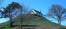 On a small hill, has two separate chambers.