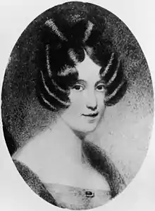 She was highly intelligent and received a good education. She could converse in French and Italian, as well as being well-versed in Latin; she played pianoforte and harp.[2] In 1836, at West Hackney (perhaps on York Road near modern Dalston?), she married Charles James Carleton, a medical student working at Guy's Hospital and who could claim a family connection with the Earls of Dorchester.[3] Together with their two young children (James Poole Carleton born 23 April 1839 and one other) they left for Australia in 1839, on the Prince Regent. It was a rough passage and both children died and were buried at sea. The passengers disembarked at Glenelg on 26 September 1839.
