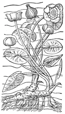 His first publication was a French translation of Rembert Dodoens's herbal, "Histoire des Plantes", published in Antwerp in 1557 by van der Loë.[15] His Antidotarium sive de exacta componendorum miscendorumque medicamentorum ratione ll. III ... nunc ex Ital. sermone Latini facti (1561) initiated his fruitful collaboration with the renowned Plantin printing press at Antwerp, which permitted him to issue late-breaking discoveries in natural history and to ornament his texts with elaborate engravings. Clusius, as he was known to his contemporaries, published two major original works: his Rariorum aliquot stirpium per Hispanias observatarum historia[16] (1576)— is one of the earliest books on Spanish flora— and his Rariorum stirpium per Pannonias observatorum Historiae (1583) is the first book on Austrian and Hungarian alpine flora.[17][lower-alpha 2]