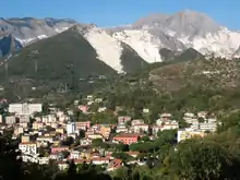 The Apuan Alps above Carrara show evidence of at least 650 quarry sites, with about half of them currently abandoned or worked out.[8] The Carrara quarries have produced more marble than any other place on earth.[9]