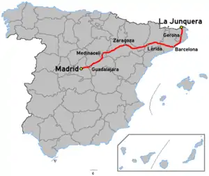 N-II was the former name for the Route Nacional from Madrid to Barcelona and France. According to the new Spanish roads nomenclature, the sections which have been already enhanced and upgraded to autovía have been recently renamed to A-2, whereas the sections still not upgraded (Zaragoza-Fraga and Barcelona-French border sections) keep the old name N-II.