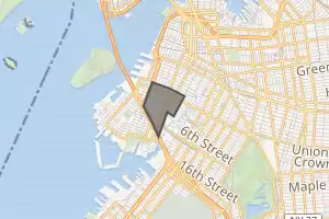 Carroll Gardens is a neighborhood in the northwestern portion of the New York City borough of Brooklyn. Taking up around 40 city blocks, it is bounded by Degraw and Warren Streets (north), Hoyt and Smith Streets (east), Ninth Street or the Gowanus Expressway (south), and Interstate 278, the Gowanus and Brooklyn–Queens Expressways (west).[3][4][5] The neighborhoods that surround it are Cobble Hill to the northwest, Boerum Hill to the northeast, Gowanus to the east, Red Hook to the south and southwest, and the Columbia Street Waterfront District to the west.[6]