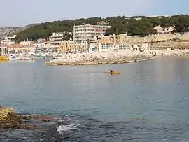 Carry-le-Rouet (French pronunciation: [kaʁi lə ʁwɛ]; Occitan: Carri lo Roet) is a commune in the Bouches-du-Rhône department in southern France. It is a seaside resort 30 kilometres (19 mi) west of Marseille, reached via highway A55 then route D5, at the foot of pine-covered hills.