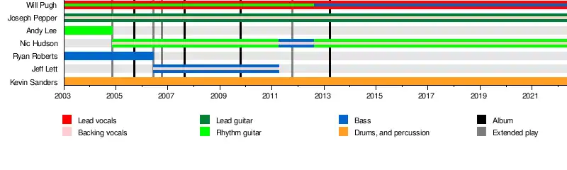 - Will Pugh – lead vocals (2003–present) , rhythm guitar (2003–2011), bass guitar (2011–present)