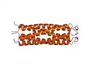The protein encoded by this gene is a noncollagenous extracellular matrix (ECM) protein.[8] It consists of five identical glycoprotein subunits, each with EGF-like and calcium-binding (thrombospondin-like) domains. Oligomerization results from formation of a five-stranded coiled coil and disulfide bonds. Binding to other ECM proteins such as collagen appears to depend on divalent cations. Mutations can cause the osteochondrodysplasias pseudoachondroplasia (PSACH) and multiple epiphyseal dysplasia (MED).[7]