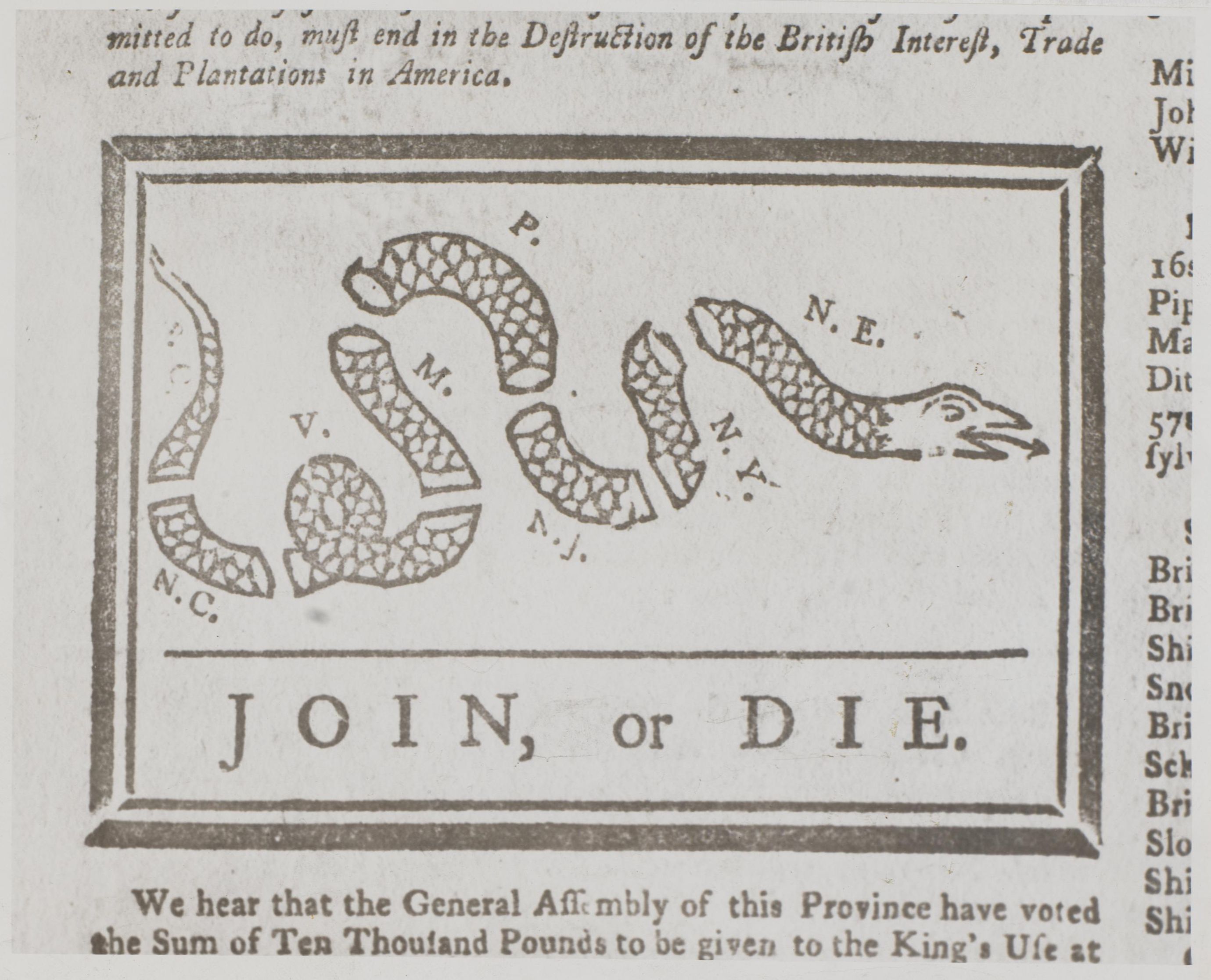 - "Encyclopedia of Greater Philadelphia | "Join, or Die," Pennsylvania Gazette, May 9, 1754". philadelphiaencyclopedia.org. Retrieved 2021-10-24.