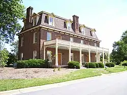 Cary's population grew after the war with the completion of the Chatham Railroad junction.[17] Around 1868, the town's first depot was built for the Chatham Railroad, and Page laid out streets, including Academy and Chatham Streets, and one acre residential lots.[14][5][17] At the time, most of Cary's men worked for the railroads, but other businesses included a furniture factory, two shingle factories, a tannery, a shoe factory, a brick factory, and a window sash and blind factory.[14][27] Page also built a Second Empire style hotel for railroad passengers, known today as the Page-Walker Hotel.[28]