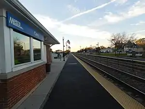 Cary is a station on Metra's Union Pacific Northwest Line in Cary, Illinois. The station is located at 100 W. Main St. near Northwest Highway (US 14). Cary is 38.3 miles (61.6 km) from Ogilvie Transportation Center, the southern terminus of the Union Pacific Northwest Line.[2] In Metra's zone-based fare structure, Cary is located in zone H. As of 2018, Cary is the 58th busiest of the 236 non-downtown stations in the Metra system, with an average of 883 weekday boardings.[1] The station consists of two side platforms which serve two tracks. A station house where tickets may be purchased is on the inbound platform. The station house was on the outbound side until 2021, when it was demolished in favor of the new building. Parking is available.