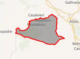 Casalattico (Campanian: Casale) is a comune (municipality) in the Province of Frosinone in the Italian region of Lazio. The village is located about 110 kilometres (68 mi) southeast of Rome and about 30 kilometres (19 mi) east of Frosinone.
