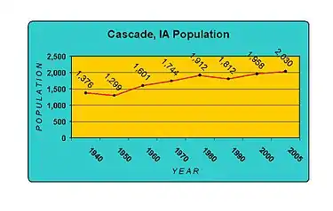 | Wikimedia Commons has media related to Cascade, Iowa. |