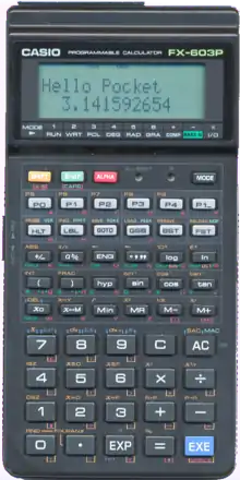 The FX-603P was a programmable calculator, manufactured by CASIO from 1990. It was the successor model to the Casio FX-602P. Since it was only released in a limited number of countries in small quantities, it is now an excessively rare item which commands high prices when sold.