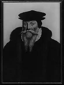 For about a decade of his life, Peucer was imprisoned and expelled from the University of Wittenberg along with several other teachers who were also expelled (1576-1586). This was mainly on account of secretly being a Calvinist along with a few other theological differences with the elector, August of Saxony.[10][5] August of Saxony ultimately had the largest hand in Peucer's imprisonment due to his intolerance of Calvinism, which was a Protestant Christian reform led by John Calvin in the 1500s that differed from Catholicism and Lutheranism which were the two dominant religions in Germany at the time.[8] Peucer was finally released from his imprisonment in 1587 after August of Saxony died.[10] That being said, philosophical teachings during the period of Peucer's imprisonment were affected and progress was greatly slowed.[5][10] The imprisonment resulted in damaged reputation, loss of credibility, and the loss of most of their power at Wittenburg for Peucer and his colleagues.[3]