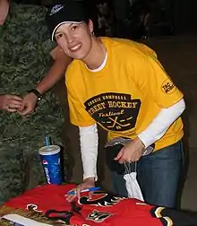 Campbell retired from competitive hockey on August 30, 2006.[3] She then joined Hockey Night in Canada as a rinkside reporter, becoming (on October 14, 2006) the first woman to do colour commentary on a Hockey Night in Canada broadcast.[4] She filled in when Harry Neale was snowed in at his home in Buffalo.[5] She launched her own website in the spring of 2008, and is a spokesperson for Scotiabank. She appears at corporate events for Scotiabank and contributed to a blog on the Scotia Hockey Club website.[6]