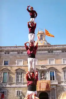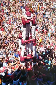 The best human towers structures ever built by the Castellers de Sarrià before its breakup in 2005 were the pillar of 5 (only assembled) and the 2 by 6.