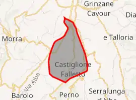 Castiglione Falletto (Italian pronunciation: [kastiʎˈʎoːne falˈletto]) is a comune (municipality) in the Province of Cuneo in the Italian region Piedmont, located about 50 kilometres (31 mi) southeast of Turin and about 40 kilometres (25 mi) northeast of Cuneo.