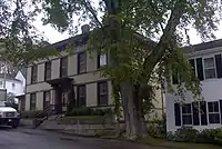 Castine has a number of historic sites and parks (including the ruins of British earthworks at Fort George), a deep water harbor (with tie-ups for small boats beyond the current of the Penobscot and Bagaduce rivers), a non-exclusive club offering golf, tennis and yachting facilities, restaurants, and four churches (Episcopal, Roman Catholic, Congregational and Unitarian Universalist). In addition, the town has a public library, an historical society, and the Wilson Museum, an institution featuring exhibits of anthropological, natural and local artifacts. Castine's streets are lined with Federal, Greek Revival, Cape Cod and other antique style houses, and shaded by large elms which are replaced with disease-resistant strains when they succumb. The Castine Post Office is in one of the oldest Post Office buildings in continuous operation in the United States. The Federal government began leasing the building (built in 1817) in 1833 and later purchased the building. In 1869 the building was renovated to accommodate the Castine Post Office.[24][7]