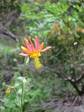 The best-known plant life in the area, however, are the lakeside and nearby meadow displays of alpine and sub-alpine flowers in the early summer.[7][52] These can include wood rose (Rosa gymnocarpa), Shasta lupine (Lupinus albicaulis), red/crimson/scarlet columbine (Aquilegia formosa), tiger lily (Lilium pardalinum), fawn lily (Erythronium sp.), pine-drops (Pterospora andromedea), douglas spiraea (Spiraea douglasii), scarlet paintbrush (Castilleja pinetorum), alpine paintbrush (Castilleja arachnoidea), dwarf paintbrush (Castilleja miniata), alpine saxifrage (Saxifraga nidifica), Shasta penstemon (Penstemon laetus), alpine buckwheat (Eriogonum pyrolifolium), and Tofield's swamp lily (Tofieldia occidentalis).[52][53] Also, in cool, wet spots near the lake, carnivorous Pitcher Plants (Darlingtonia californica) appear.[54]