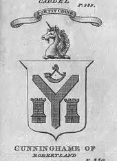 In 1607 Over, Nether Castleton and Fulshaw were part of the estate of Robertland, being held by David Cunninghame, his son Sir David, and in 1628 his son, also David Cunninghame.[8][9] Over Lochrig (sic) near Stewarton was at one time a part of the estate.[10] In 1628 Waterland in the Parish of Dunlop was part of the estate.[11]