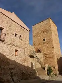Castle had three towers one today in ruins and one known as keep Tower.[2] One tower hosts exhibitions. The Tower located on the upper level has a stone base on which stands a mud-based, badly damaged body. The second tower built in masonry and mud, is better preserved and is used as housing. This tower has a wall that unites it with the third tower and is located in the lower level of the walled enclosure. "The keep" is built in masonry and Ashlar, and contains saetera [3] In the face that looks towards the intramural opens a gateway with arc providing access to "The homage Tower", formed by a slightly pointed arch.