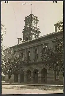 Two years later, in October 1912, the first solo exhibition of paintings by a local resident, Elsie Barlow, wife of a Castlemaine police magistrate,[25] was held in the reading room of the Mechanics Institute, raising hopes "that the Castlemaine public will have the same opportunity in this matter as is afforded to the Melbourne public, which now-a-days is rarely without an Art Exhibition."[26]