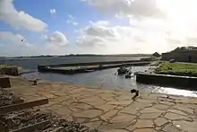 The name Stanergill can be read as meaning Stone Valley and much of Castletown was built during the 19th century boom years of Caithness as a source of flagstone. Much of the stone was processed in the harbour area of the village, known as Castlehill, and many of the streets of London, Sydney, Edinburgh and the financial district of New York City are paved with it. The harbour was built by James Bremner. Castletown's main building is the 'Drill Hall'. This is mainly used for parties, discos and small clubs such as the indoor bowls. The building that was used for these functions was the 'Traill Hall', a gift to the Village by the Traill family, owners of the flagstone quarry at Castlehill. Traill House, a large and imposing country home was the residence of the Traill family. It was located in the woods at Castlehill, in later years it was owned by the Crumb-Ewing family, it became derelict after WW2 and burned down in the late 1950s. The remains of the gatehouse can be seen on the side of the A836 at Castlehill plantation.