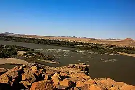 Geologists indicate that the region of northern Sudan is tectonically active and this activity has caused the river to take on "youthful" characteristics.[1] The Nubian Swell has diverted the river's course to the west, while keeping its depth shallow and causing the formation of the cataracts. Even as the river bed is worn down by erosion, the landmass is lifted, keeping parts of the river bed exposed. These distinctive features of the river between Aswan and Khartoum have led to the stretch being often referred to as the Cataract Nile, while the downstream portion is occasionally referred to as the "Egyptian" Nile. The geological distinction between these two portions of the river is considerable. North of Aswan, the river bed is not rocky, but is instead composed of sediment, and far from being a shallow river. It is believed[2] that the bedrock was previously eroded to be several thousand feet deep. This created a vast canyon that is now filled with sediment.