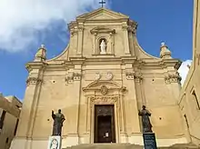The nobleman Felice Axac was a major benefactor in the church's reconstruction.[4] The foundation stone of the present church was laid down on 21 September 1697, and the building was designed by the Maltese architect Lorenzo Gafà.[5] It was inaugurated on 14 August 1711, and was dedicated on 11 October 1716.[3]