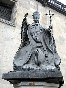 The Renaissance period witnessed a dramatic growth in Marian art.[44] Masterpieces by Botticelli, Leonardo da Vinci and Raphael were produced in this period. In the 16th century, the Council of Trent confirmed the Catholic tradition of paintings and artworks in churches, resulting in a great development of Marian art and Mariology during the Baroque Period.[7] During the Reformation, the Catholic Church defended its Mariology against Protestant views. With the victory at Battle of Lepanto (1571) accredited to her, it "signified the beginning of a strong resurgence of Marian devotions."[45] The baroque literature on Mary experienced unforeseen growth. More than 500 pages of Mariological writings were published during the 17th century alone.[46]