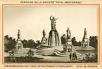 The Catholic Total Abstinence Union Fountain (1874–77) – also known as The Catholic Total Abstinence Centennial Fountain or The Centennial Fountain – is a now defunct ornamental fountain and drinking fountain located in West Fairmount Park, Philadelphia, Pennsylvania. Created as an attraction for the 1876 Centennial Exposition, it was commissioned by the Catholic Total Abstinence Union of America, a religious organization that advocated for total abstinence from alcohol.