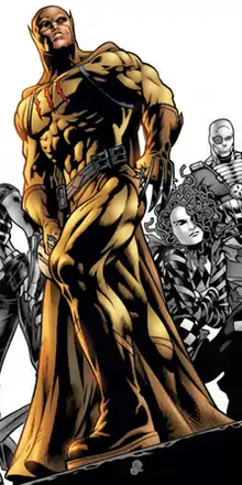 ![]() Catman featured in the artwork for the cover of the third printing of Villains United #1, art by Dale Eaglesham. | |