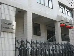 The school opened a fifth campus in Nanjing, China in 1998, with a residential campus constructed on property owned by the High School Affiliated to Nanjing Normal University. This became the first overseas campus for an Australian high school,[48][49] and the first campus established by a foreign secondary school in China.[50] It is staffed by six full-time Australian teachers, as well as six trainees selected from the school's annual graduating Year 12 class who complete 12-month gap year placements.[51] Most Caulfield Grammar Year 9 students take part in five-week internationalism programs and are based in Nanjing.[52]