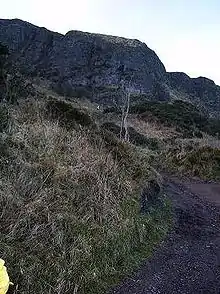 Cave Hill or Cavehill[1] is a rocky hill overlooking the city of Belfast, Northern Ireland, with a height of 368 metres (1,207 ft). It is marked by basalt cliffs and caves, and its distinguishing feature is 'Napoleon's Nose',[2] a tall cliff which resembles the profile of the emperor Napoleon. On top of this are the remains of an ancient promontory fort called McArt's Fort. Cavehill was also historically called 'Ben Madigan' (from Irish: Beann Mhadagáin, "Madagán’s peak"), after a king of Ulster called Madagán who died in 856AD.[1]