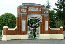 Caversham has no secondary schools, although it does contain a primary school and a special needs school. Carisbrook School, at the corner of South Road and Surrey Street, was formed from a 2012 merger of Calton Hill School, Caversham School, and College Street School on the Caversham School site,[40] which was established in 1921. The school's predecessor dates back to the early 1860s. The roll is 298 students as of March 2022.[41][42] The school's two-storey 1920s brick buildings were pulled down and replaced in 1961, because of their structural unsoundness. The school's main gate – the only surviving remnant of the earlier structure – is the suburb's war memorial.[43]