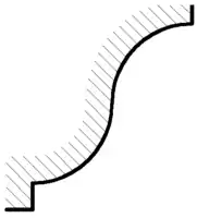 The cavetto moulding is the opposite of the convex, bulging, ovolo, which is equally common in the tradition of Western classical architecture. Both bring the surface forward, and are often combined with other elements of moulding. Usually they include a curve through about a quarter-circle (90°).[3] A concave moulding of about a full semi-circle is known as a "scotia".[4]