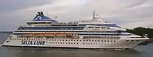 Silja Opera's cruises from Helsinki were not very popular, and in October 2004 she began making cruises from Stockholm to Tallinn (via Mariehamn in order to have tax-free sales on board). These too failed to find popularity, and in February 2005 she was transferred back to cruising from Helsinki.[4] Around this same time her white-dominant livery was changed to one closely resembling her Sally-era livery, but with blue stripes instead of black. With the ship continuing to lose money, in September 2005 Silja Line made public its plans to use cheaper foreign workforce on board. However they could not do so under the terms Swedish maritime worker's collective labour agreement.[8] Two months later Silja Line decided to cut costs by concentrating on their core markets and the Silja Opera, alongside the prestigious GTS Finnjet, was to be sold.[8] In January 2006 Silja Opera made her last cruises from Helsinki, after which she was transferred to the Turku—Mariehamn—Kapellskär route in place of MS Silja Europa (that was in turn transferred to Helsinki—Stockholm route while the normal ships of that route were being rebuilt). On 13 February 2006, the Silja Opera stopped sailing for Silja Line, and three days later she was laid up Stockholm, waiting for potential buyers.[4]