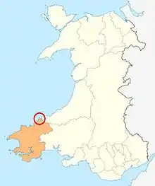 Cemais (sometimes spelled Kemes after one of several variations found in Medieval orthography) occupied the coastal area between the Teifi estuary and Fishguard, and the northern and southern slopes of the Preseli Hills, and had an area of about 359 km2. Robert fitz Martin (c. 10?? – c. 1159), a Norman knight from the west of England who supported Henry I in his campaigns in Wales, became first Lord of Cemais and founded nearby St Dogmaels Abbey.[24]