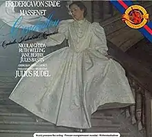 The album presents the opera with only one small cut, but deviates from Massenet's score in casting Prince Charming as a tenor rather than as a soprano.[1] The album was the first recording of the opera ever undertaken.[2]