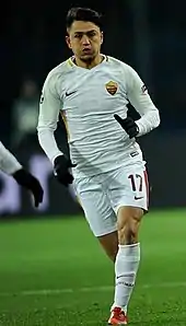 On 16 July 2017, he became a Roma player for a €13.4 million fee.[4] He scored his first goal for Roma in a 1–0 win over Hellas Verona in the Serie A on 4 February 2018.[5] In the same month, he marked his Champions League debut with a goal; the opener in a 1–2 loss to Shakhtar Donetsk in the first leg of the first round of knockout fixtures,[6] becoming the youngest Turkish player ever to score in the Champions League.[7]