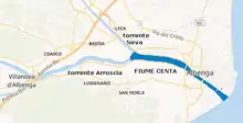 Its source is near the Italian village of Leca (Albenga), at the junction between Arroscia and Neva. The river flows south before emptying into the Ligurian Sea near Albenga.