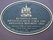 Battlefield House, built in 1796, and fifteen and one-half acres of parkland, (Battlefield Park), was property of the Women's Wentworth Historical Society, (1899–1962), and given by this society to the Niagara Parks Commission as a National historical site on January 19, 1962.