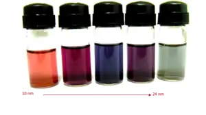 Optical photos of Gold NPs between 10 – 24 nm in size