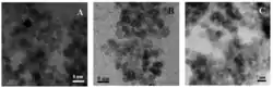 TEM micrographs of the NPs synthesized in (A) isopropanol, (B) methonal, and (C) ethanol