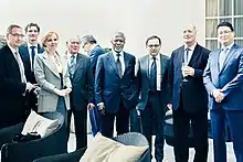 The committee gathered several prominent political figures and Nobel Peace Prize laureates, including former Israeli President Shimon Peres, former Vice President of Egypt and the general-director of the International Atomic Energy Agency Mohamed ElBaradei, former President of Poland Lech Walesa, Guatemalan human rights activist Rigoberta Menchu and the Chairman of the IPCC Rajendra Pachauri,[14][15] former President of Colombia Cesar Gaviria and former Spanish Prime Minister Jose Luis Zapatero. The Committee met in Nur Sultan, Kazakhstan, where they were received by the President Nazarbayev in the Presidential Palace.[16]