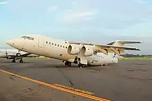 The center of gravity of this British Aerospace 146 shifted rearward when its engines were removed. As a result, it tipped back onto its rear fuselage in windy conditions.