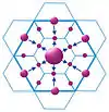 According to the marketing principle K = 3, the market area of a higher-order place (node) occupies one-third of the market area of each of the consecutive lower size place (node) that lies on its neighbour; the lower size nodes (6 in numbers and second larger circles) are located at the corner of a largest hexagon around low value the high-order settlement. Each high-order settlement gets one-third of each satellite settlement (which are 6 in total), thus K = 1 + 6 × 1⁄3 = 3.