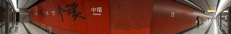 Central (Chinese: 中環; Cantonese Yale: Jūngwàan) is an MTR station located in the Central area of Hong Kong Island. The station's livery is firebrick red but brown on the Tsuen Wan line platforms. The station is the southern terminus of the Tsuen Wan line, a stop on the Island line, and connects to Hong Kong station, which serves the Tung Chung line and the Airport Express.